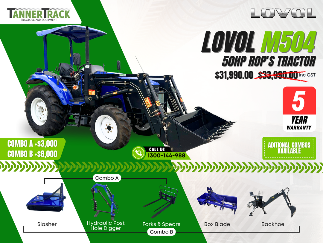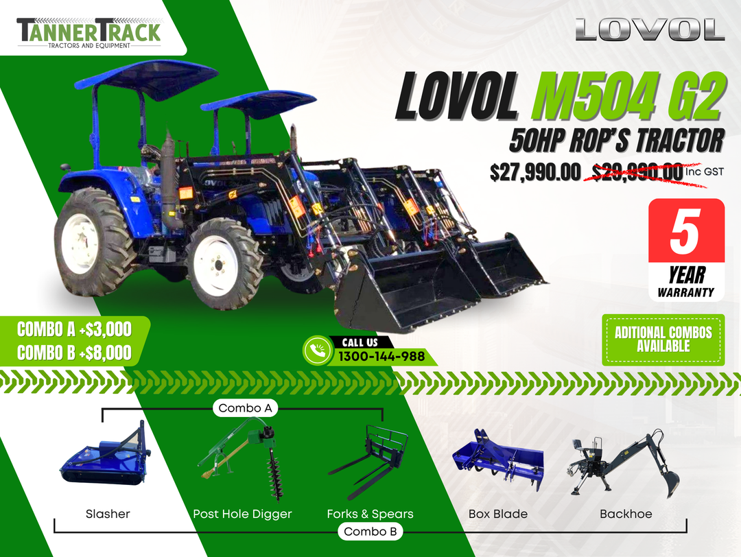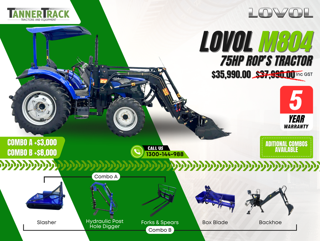 Discover the power, durability, and superior engineering of LOVOL tractors: a leading choice among farmers and contractors across Australia. Take one look at our catalogue and you’ll soon see that we know our LOVEL TE tractors from our TD models! At TannerTrack, we’re more than just your trusted LOVOL tractor dealers — we’re also your partners in productivity. Providing top-of-the-line LOVOL tractors for sale that meet your every need, we help you navigate the terrain of modern agriculture with ease and expertise.